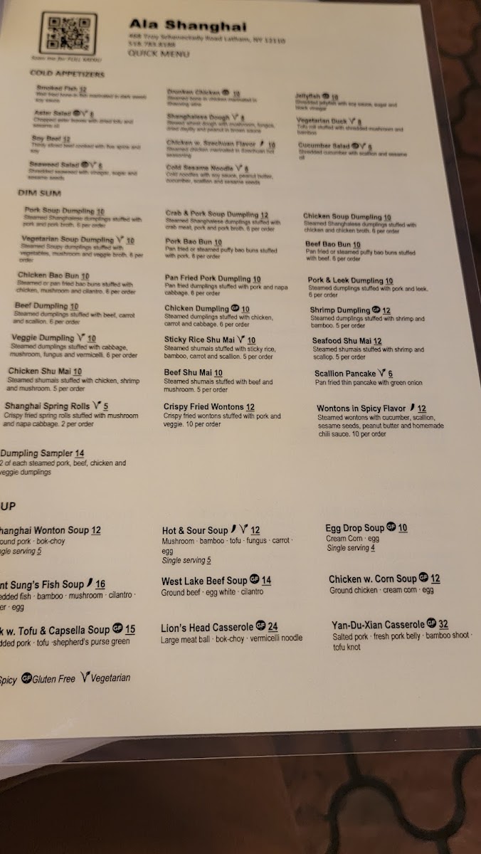 The menu at Ala Shanghai Chinese Cuisine offers a variety of traditional Chinese dishes organized into several key categories to suit different dining preferences. Visitors can explore options across Soups & Casserole, Dim Sum, and Fish, among other selections.